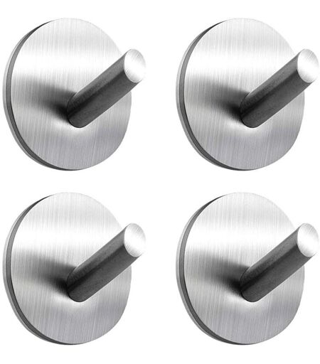 LANGRAY 4 Pièces Crochet Adhésif, 8kg Max Crochet Mural de Salle de Bains En Acier Inox, Porte Serviette Avec Scotch Adhésif, Famille et Bureau, Auto-Adhesif