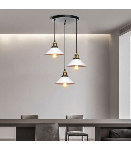 AXHUP Rétro Lustre Suspension Industrielle E27 3 Lampes Plafonnier Luminaire Ajustable pour Salle à Manger Salon Blanc et Noir