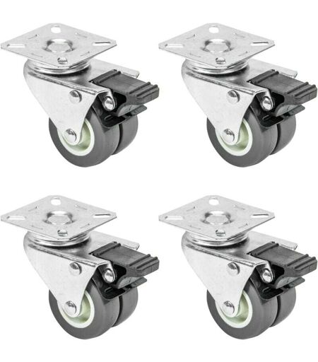 Ulisem6720 Lot de 4 roulettes doubles pour charges lourdes avec frein Polyuréthane 50 mm jusqu'à 400 kg Gris