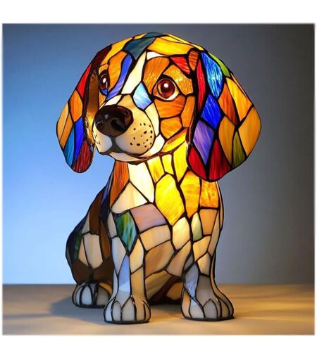 VTIZIKL Beagle FVeilleuse artistique , lampes de table LED à thème de chiens mignons, veilleuse de table bouledogue français en résine teintée, décoration