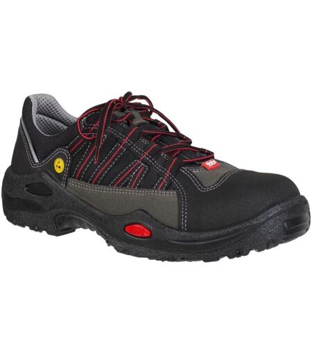 Gamme E-Sport. En cuir enduit PU et cuir croûte. Doublure polyester et polyamide. Embout de sécurité en aluminum. Insert antiperforation en textile composite traité plasma (PTC). Semelle extérieure PU résistante aux huiles. Propriétés antistatiques, conforme à la norme CEI 61340-5-1 (ESD). Bord de tige rembourré. Semelle interne respirante. ...