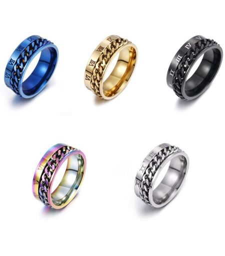 Edc Doigt Fidget Spinner Chaîne En Acier Inoxydable Rotatif Anneau Hommes Classique Rome Numérique Puissance Sens Cadeau P31b