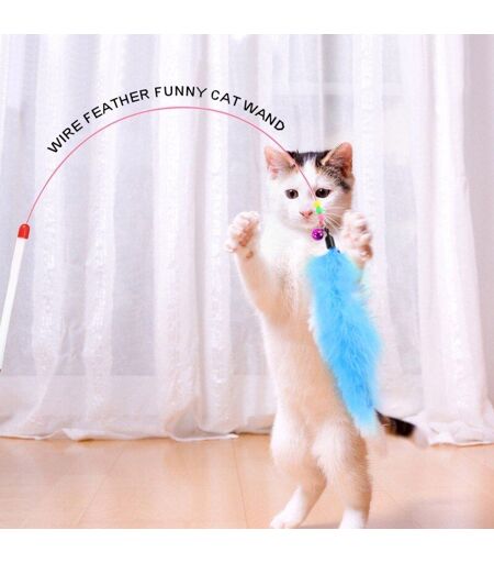 Fil D'acier Résistant Aux Morsures Pour Animaux De Compagnie Drôle Plume Chaton Chat Jouet Plume Teaser Cloche Perle Jouer Couleur Bâton Couleur Aléatoire 1pc