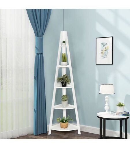 MAISONCHIC Étagère d'Angle Meuble de Rangement à 5 niveaux 35 x 35 x 175 cm Blanc en MDF de Haute Résistantce DESIGN IN