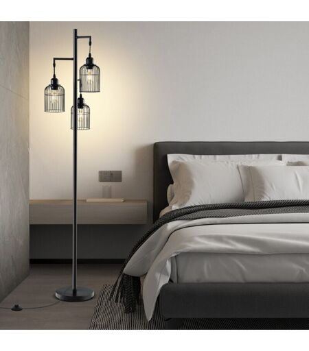MAISONCHIC Lampadaire Moderne Lampadaire Industriel 169 cm 3 Abat-jours en Forme de Cage Interrupteur au Pied Base Robuste Lampadaire Haut Noir design in