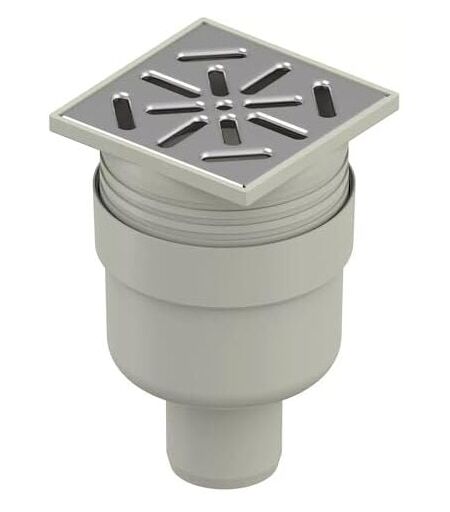 UPONOR AQUA AMBIENT DN 50 SIPHON DE SOL VERTICAL STANDARD AVEC GRILLE EN ACIER INOXYDABLE, ÉCOULEMENT À POINTS AVEC GRILLE EN INOX 10 CM X 10 CM, GRIS ...