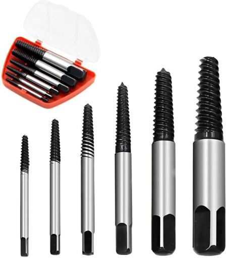 6 pcs screw extractor set, bolt extractor, spiral groove bolt remover set, can easily remove broken screws, dropped screws, studs