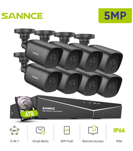 SANNCE 8CH Kit de vidéosurveillance vidéo 5MN dvr 8 × 5MP caméra étanche ir Vision nocturne système de caméra de sécurité d'accès à distance-disque dur de 4