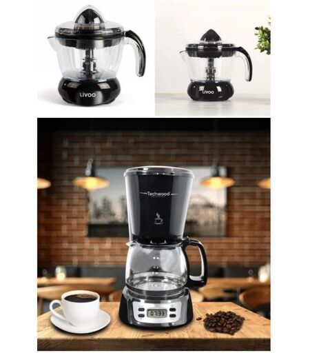 Techwood Cafetière Électrique Noire Programmable 6 Tasses 650w Fonction Maintien Au Chaud + Presse Fruit Agrumes Electrique Noir 700ml
