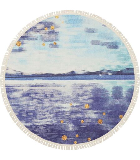 Teeaw-Tapis Rond À Pompons De 1,2 M - Imprimé Lac Et Ciel - Tapis De Sol Bohème Pour Chambre À Coucher, Salon, Canapé, Table Basse, Balancelle, Lit - Côté De Lit - 120 Cm - 303120