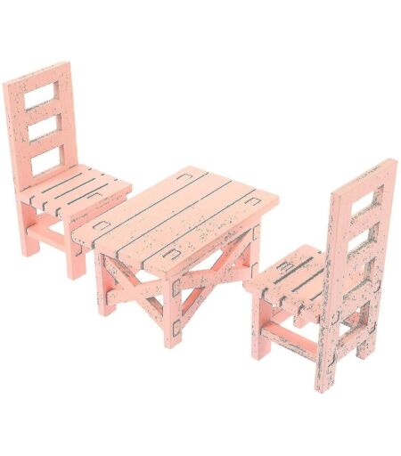 Ensemble de chaises et table miniatures en bois pour enfants ¿ Meubles pour maison de poupée miniature ¿ Jouets créatifs pour le temps libre en rose
