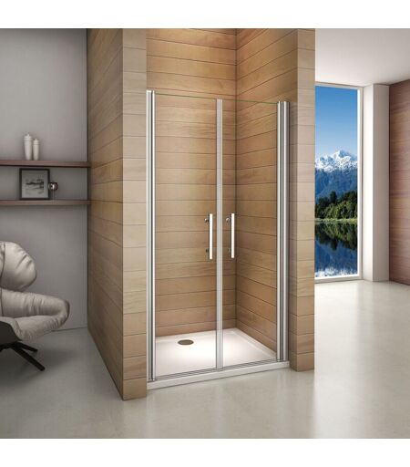 AICA SANITAIRE Porte de douche pivotante 90x187cm porte de douche installation en niche verre anticalcaire ouverte vers l'intérieur ou l'extérieur