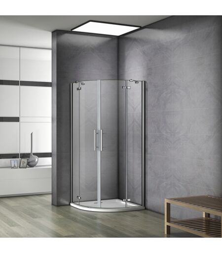 AICA SANITAIRE 80x80x195cm cabine de douche à charniére accès d'angle 1/4rond avec paroi de douche et barre de fixation