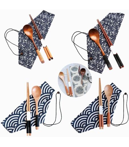 Bon66 Couverts De Table Créatifs Avec Sac Cuillère En Bois Ensemble De Baguettes Vintage De Style Japonais Pour La Maison De Voyage