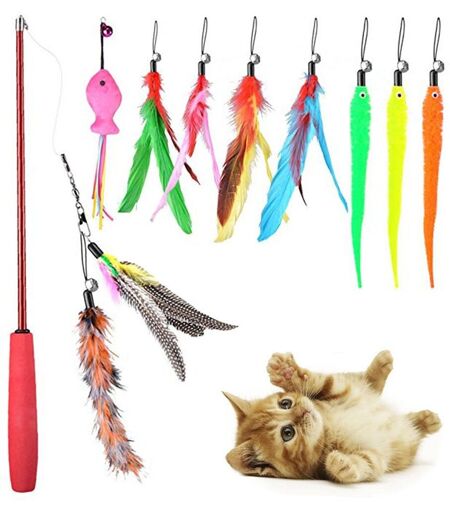 Xm Tease-Jouets Plumes Chaton Colorés Baguette De Chat Jouets En Plastique Pour Animaux De Compagnie Bâton Interactif Fournitures Pour Chat De Compagnie Livraison Directe
