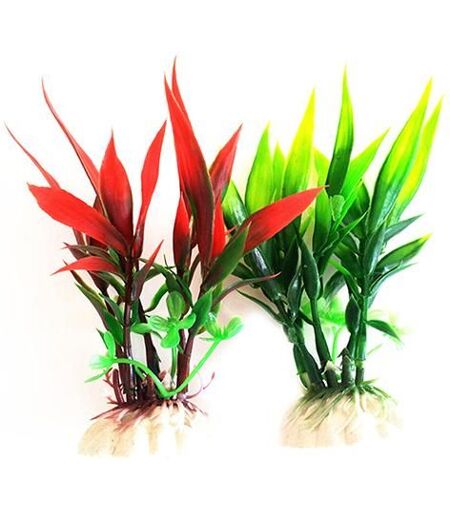 Xm Herbe En Plastique Rouge Verte Artificielle Plante En Plastique Inoffensif Pour Aquarium Aquarium Décoration Paysagère