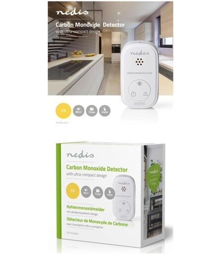 Nedis Détecteur Alarme de monoxyde de carbone Design Alimenté par pile Autonomie 10 ans 85 dB Blanc