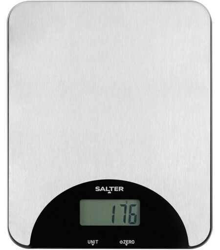 Salter LETNERNY-Balance Électronique En Acier Inoxydable¿ Balance De Cuisine, Écran Lcd, Mesure Les Liquides, Capacité imale De 5 Kg/11Lb, Parfait Pour La Cuisson À Domicile, Affichage Numérique