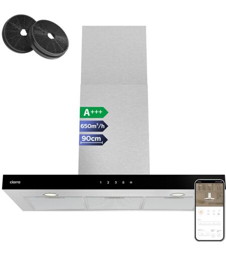 Ciarra - Hotte Aspirante 90cm app Contrôle 650m3/h Classe a+++ 4 Vitesses Booster CD9102S