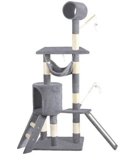 Vounot - Arbre à chat 154cm avec griffoir, niche et plateforme - Gris - Arbre à grimper pour chats