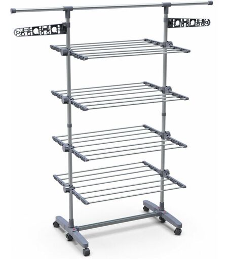 Séchoir à linge inox robuste pliable - étendoir mobile 4 niveaux - ailes pliables - barre télescopique extensible - Vounot