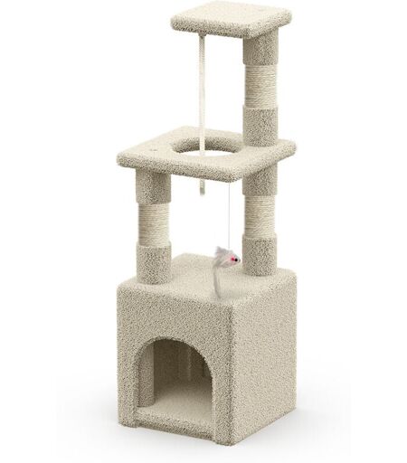 Vounot - Arbre à chat 88cm avec corde, griffoir, niche et plateforme - Beige - Arbre à grimper pour chats