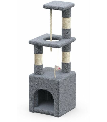 Vounot - Arbre à chat 88cm avec corde, griffoir, niche et plateforme - Gris - Arbre à grimper pour chats