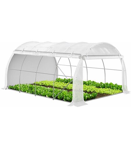 Vounot - Serre de jardin tunnel Toute Saison 12m² blanc - fenêtres et portes latérales zippées enroulables - barre anti-tempête