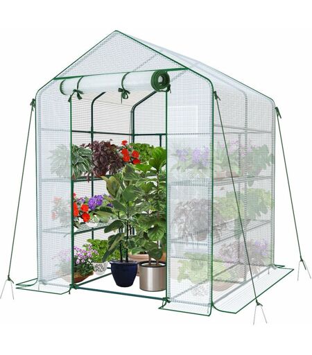 Vounot - Serre de jardin avec étagères 143x143x195cm blanc - bâche renforcée 135g/m² - fenêtre moustiquaire - porte enroulable zippée
