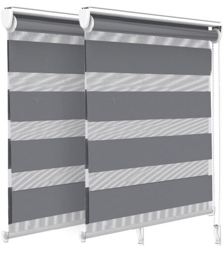 Vounot - Lot de 2 Stores enrouleurs jour/nuit zébrés - 80 x 150 cm - Gris - Sans perçage ou avec
