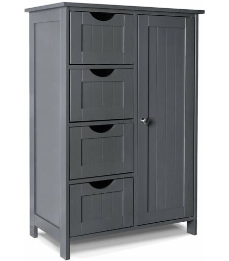 Vounot - Meuble bas de salle de bain 55x30x82cm - Armoire de rangement avec 4 tiroirs, 1 porte, 1 étagère réglable - Gris