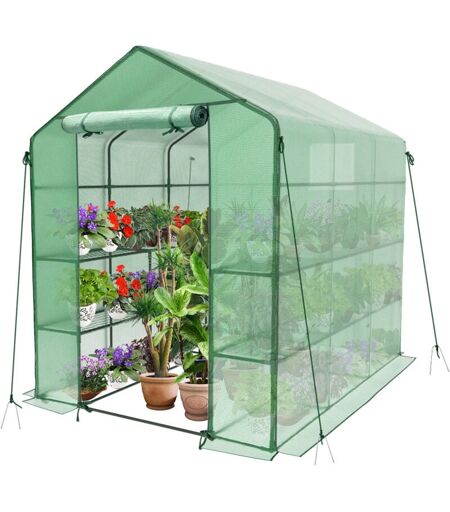 VOUNOT® Serre de jardin avec étagères 143x215x195cm vert - bâche renforcée 135g/m² - fenêtre moustiquaire - porte enroulable zippée
