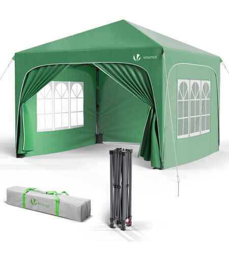 Vounot - Tonnelle de jardin arquée 3x3m pliable avec porte et fenêtre amovible - Hauteur réglable - Imperméable et anti-UV - Vert