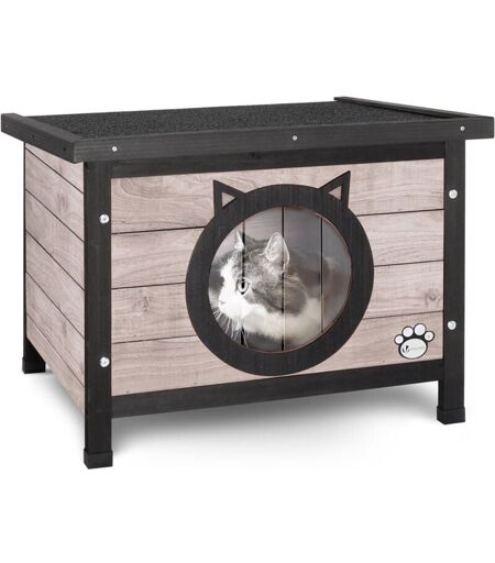 VOUNOT Maison pour chat niche en bois gris - toit bitumé autoportant et amovible - porte à lamelles