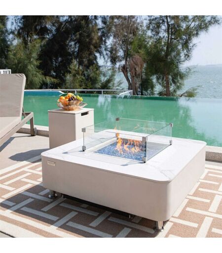 ELEMENTI Brasero extérieur annecy Brasero au gaz de table pour extérieur, salon de jardin en béton gfrc, plateau de table en porcelaine aspect marbre blanc