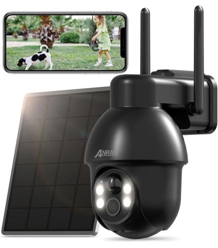 Anran - Caméra de Surveillance WiFi Extérieure 3MP sans Fil Solaire, 360° ptz Vision Nocturne Couleur ,Spotlight pir Détection Humaine, Audio