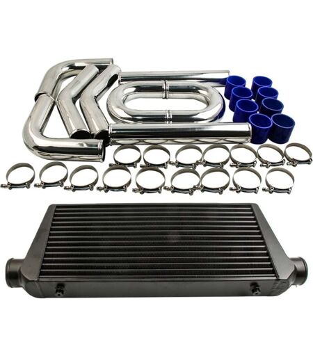 MAXPEEDINGRODS Universal 600x300x76mm Intercooler Black + 3" 76mm Intercooler Piping Pipe Kit