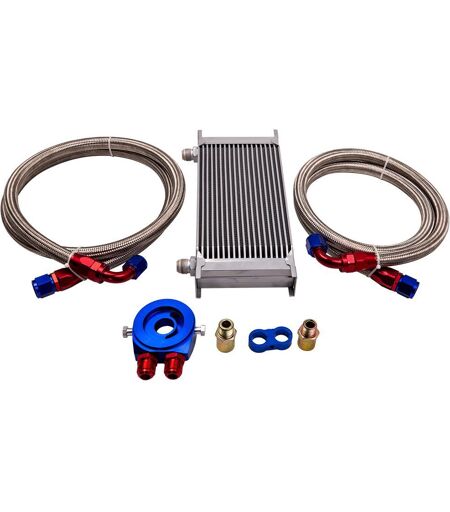 ItemSpecifics: Inlet / Outlet Size: AN-10 Core Size: 10.6" x 5.39" x 1.97" Overall Size: 12.87" x 6.3" x 1.97" Center Adapter: M20 x 1.5 & 3/4 x 16 UNF Thread Comes with 2 Oil Lines Helps Reducing Coolant Temperature and Extends Engine Life Quantity: Oil Cooler Filter Adapter Hose Kit Package Includes: 1x 3/4-16 Female Fitting 1x M20xp1.5 Female Fitting 1x Oil Cooler 1x 10-An Hose Line Separator 2x 10-An 0 Degree Swivel Aluminum Hose End 2x 10-An 90 Degree Swivel Aluminum Hose End 1x Oil Filter Thermostat Sandwich Adapter Stainless Steel Braided Hose ( 56" x 1 + 62" x 1) Warranty: 2 year warranty for any manufacturing defect ...