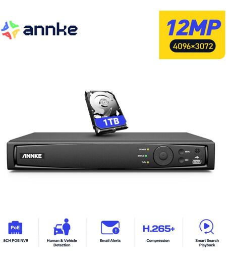 ANNKE 8 Canaux 12MP poe nvr, Enregistreur vidéo réseau de système de caméra vidéosurveillance 12MP, Prise en Charge de 8 caméras de sécurité ip