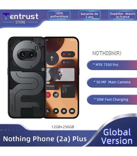Version globale Nothing Phone (2a) Plus Ecran AMOLED 6.7 » 120Hz MTK Dimensity 7350 Pro Appareil photo 50MP Batterie 5000mAh Chargement 50W ...