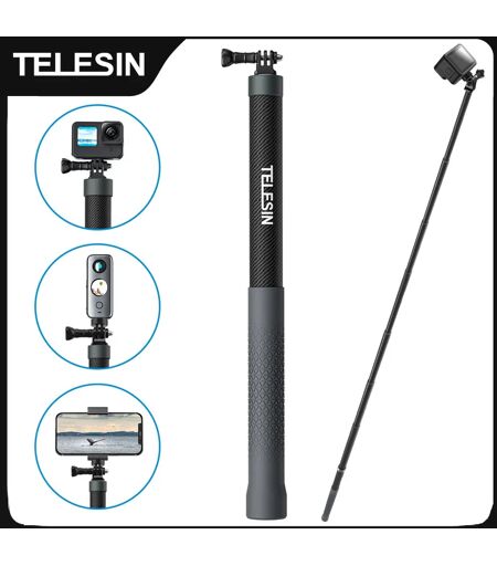 TELESIN 1.2M 3M fibre de carbone Selfie bâton monopode extensible avec 1/4 vis pour GoPro Insta360 Osmo Action DJI caméra d'action