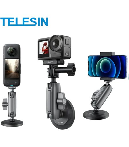 TELESIN Alliage d'aluminium Magnétique 360 ° Support de caméra d'action adaptateur 1/4 réglable pour téléphone intelligent GoPro Insta360 DJI OSMO Action