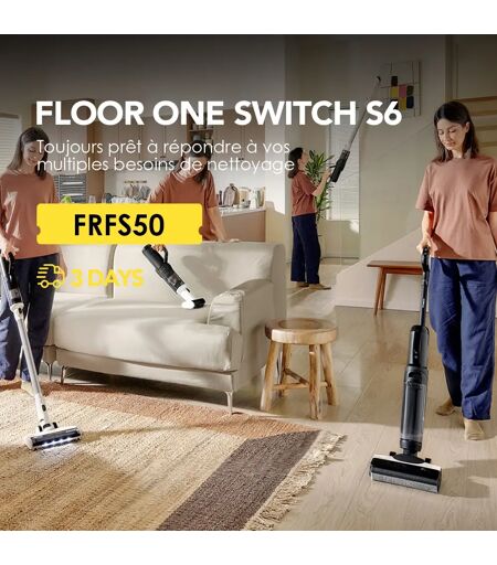 Tineco Floor One Switch S6 Nettoyeur de Sol, Aspirateur Eau et Poussière sans Fil 5-en-1, Séchage Flash en 5 Min, Auto-Nettoyage, Brosse ZeroTangle, Nettoyage Angles des 2 côtés