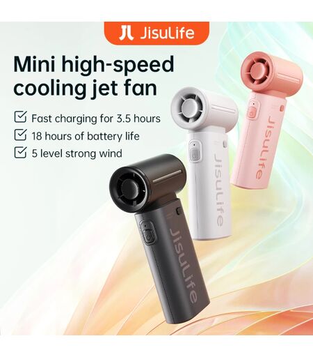 JISULIFE ventilateur Turbo portatif, vent Super fort, 5 vitesses, longue durée de vie de la batterie, 5000 mAh, USB Rechargeable, ventilateur de poche polyvalent
