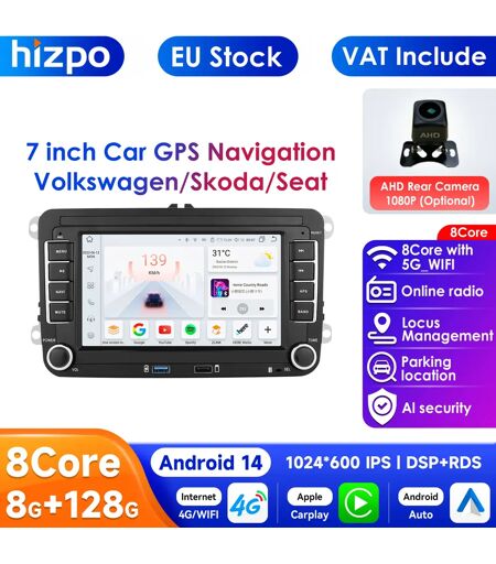 HIZPO GPS Android 14 Auto Radio pour Volkswagen VW Passat B6 B7 T5 Tiguan Touran GOLF POLO Carplay 4G voiture multimédia GPS 2din Autoradio