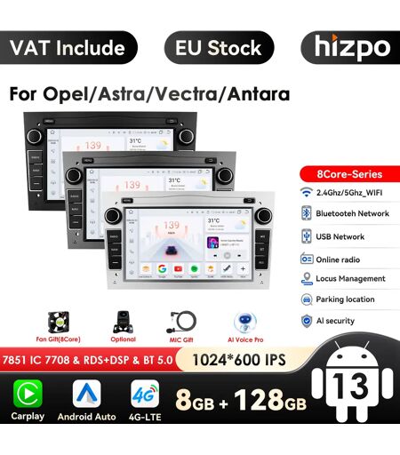 Hizpo-Autoradio Android CarPlay avec GPS, Opel Astra H J Vectra SachAntara Zafira Corsa C D Vivaro Meriva Veda ...