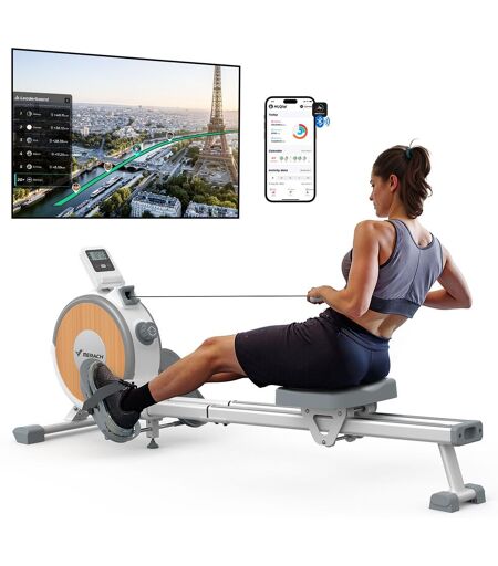 Rameur D'appartement Merach, 16 Niveaux De Résistance Magnétique, Charge Max De 160 Kg, App Connecté