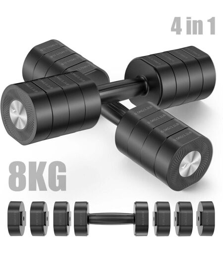 Merach - Haltère Musculation Réglable 4-en-1, Lot de 2 Poids de 1 à 4 kg, à Domicile ou en Salle De Sport, pour Hommes et Femmes, Noir