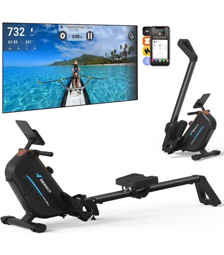 Merach - Rameur d'appartement magnétique, 16 Niveaux de Résistance, Bluetooth, App Connectée, Écran lcd, Support Tablette, Pliable, Max Charge 155 kg