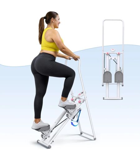 Stepper Escalier Pliable Vertical Merach, 2 Niveaux De Résistance, 3 Positions De Pédales Ajustables, Écran Lcd, 136 Kg, Blanc
